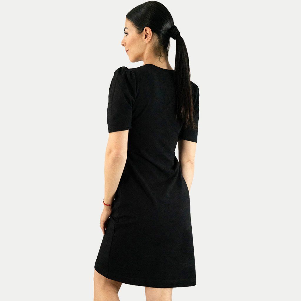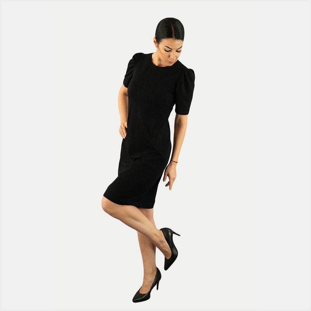 - Elegantní bavlněné šaty, s nařaseným rukávem vynosíte do práce nebo na společenské události všeho druhu.