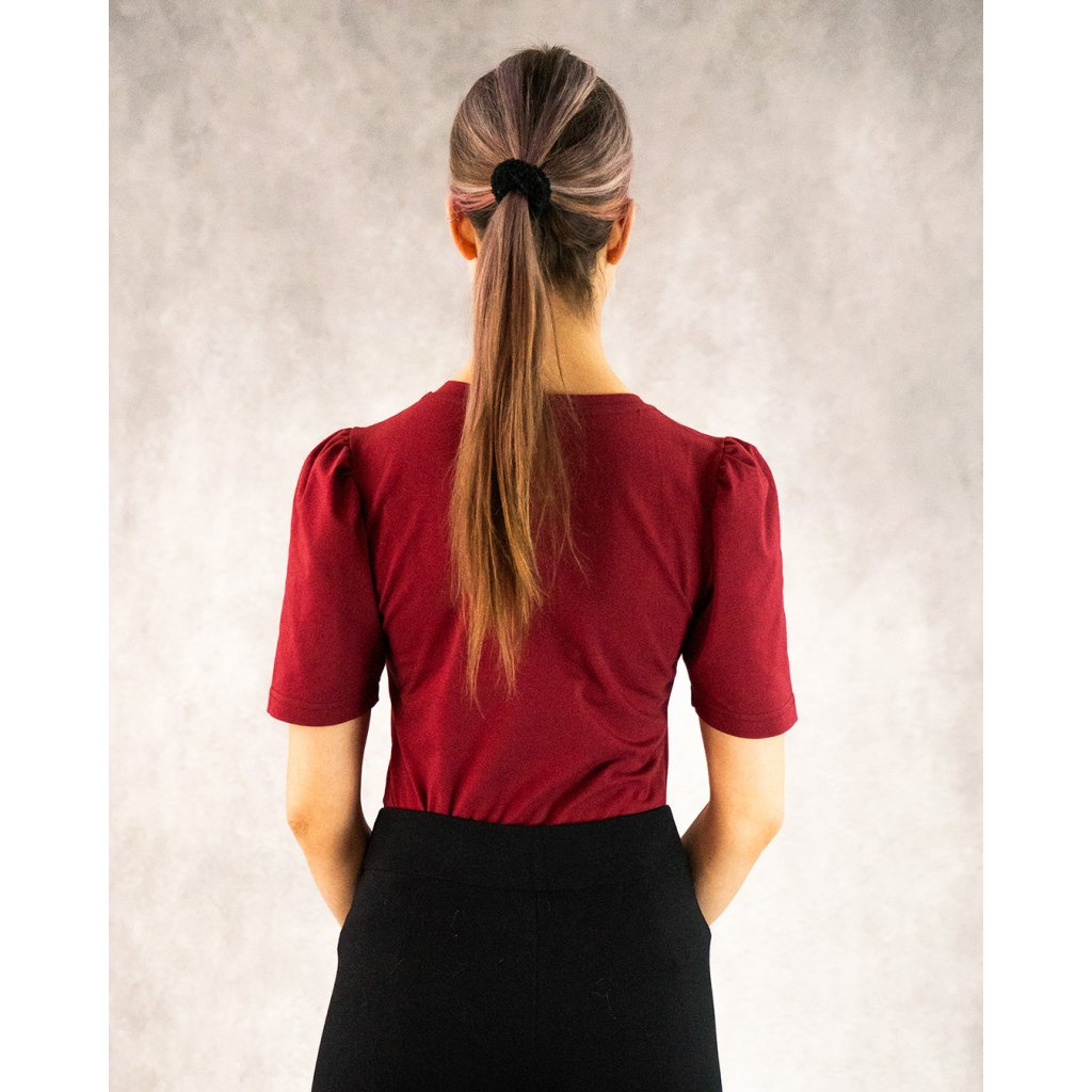 - Nařasený rukáv dotváří siluetu přesýpacích hodin a zároveň dělá tričko originálním.