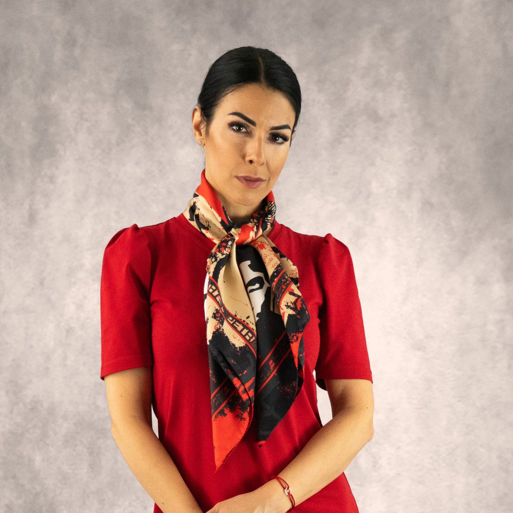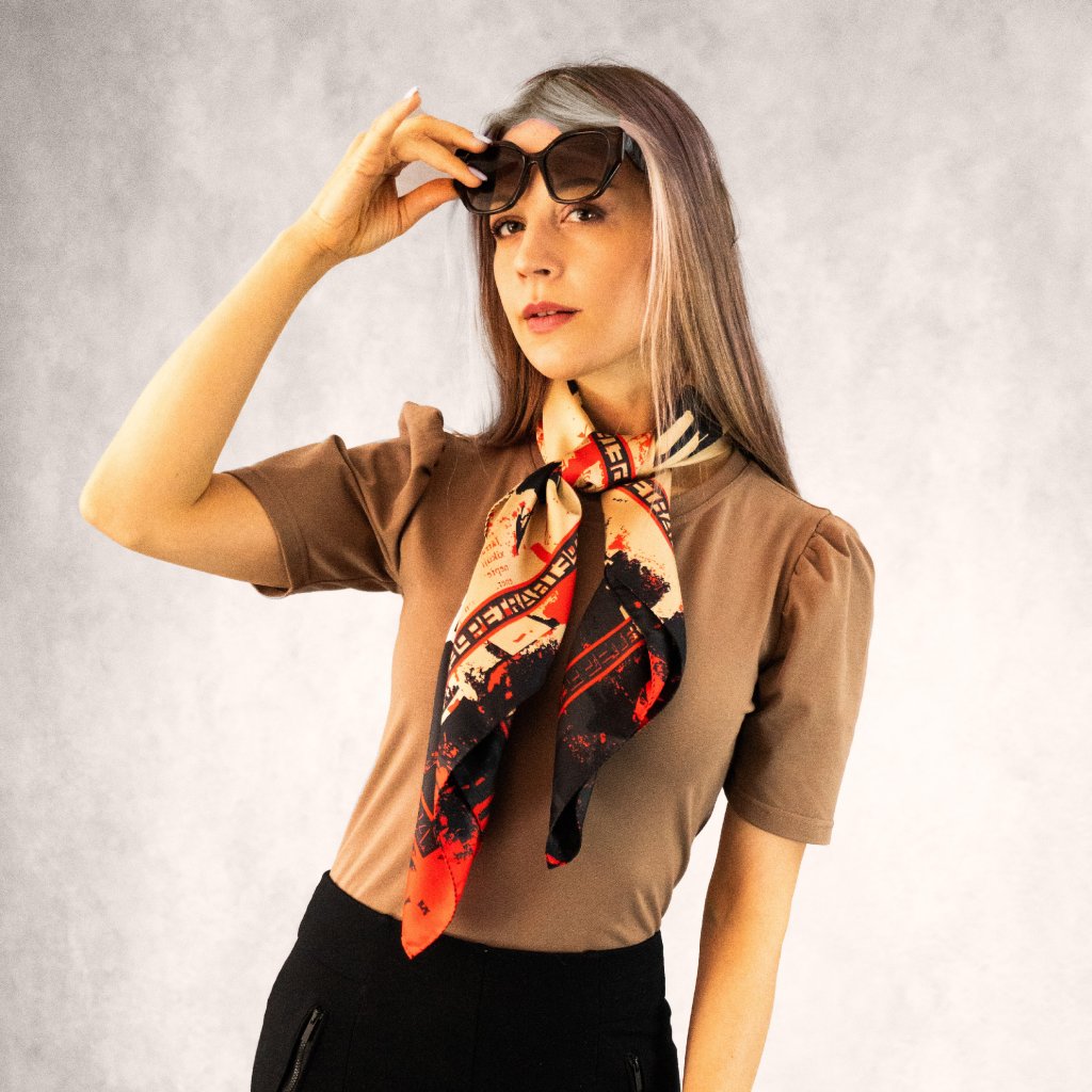 - Hedvábný šátek o rozměrech 90 x 90 cm z vysoce kvalitního italského hedvábí.
